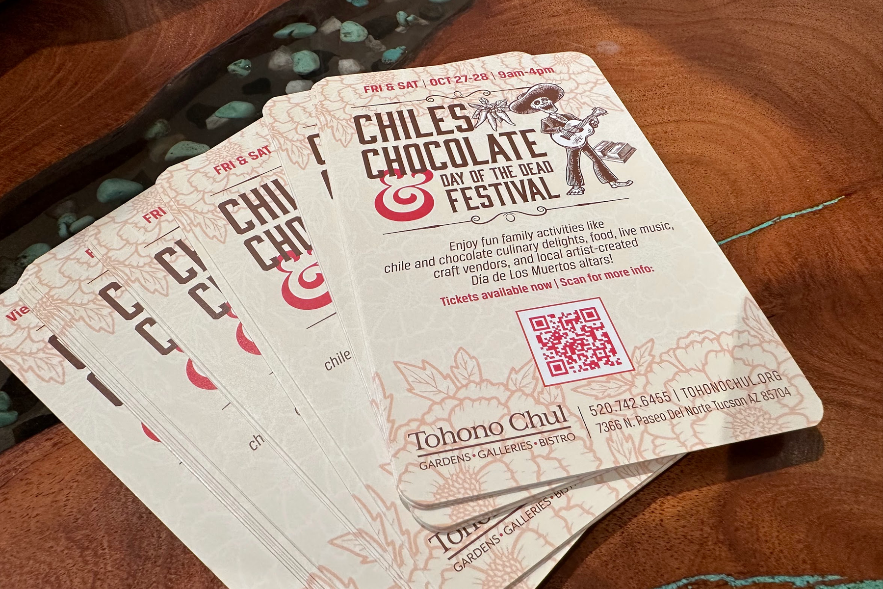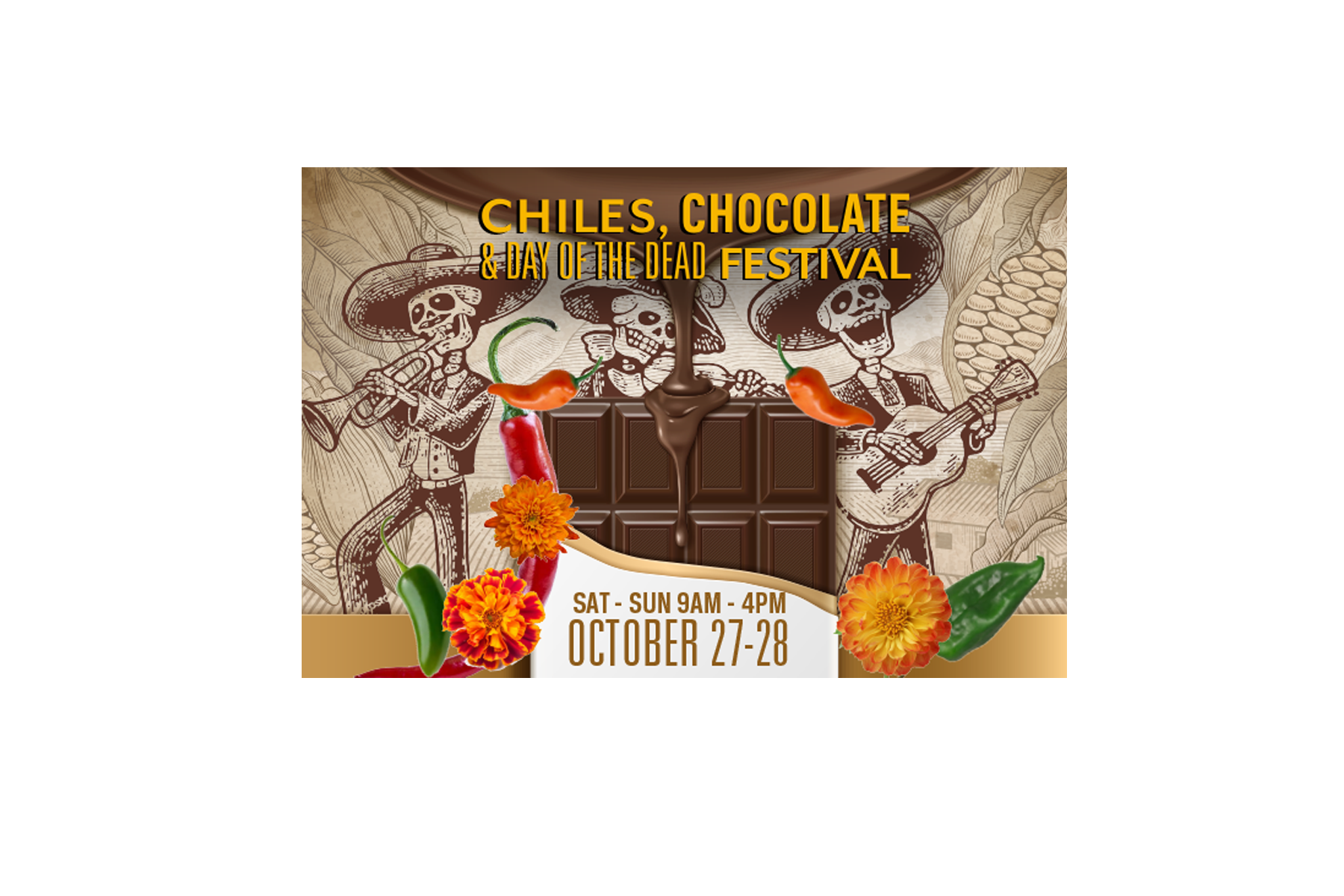 Celebrate your ancestors with food, music and chocolate! The Chiles, Chocolate & Day of the Dead Festival is a bi-annual event of the Tohono Chul Botanical Gardens in Tucson Arizona where the public is invited to celebrate the fall season food, music, crafts and activities associated with Día de los Muertos. The goal of the branding was to refresh the look of the event by integrating the three main elements of the festival into a singular, culturally appropriate icon that would appeal to the local community. Everyone loves chocolate, but not everyone has been introduced to the what Day of the Dead means to Southern Arizona!